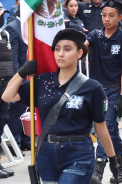 En el desfile participaron más de 30 contingentes, entre los que se destacaron 26 instituciones educativas de nivel primaria, así como bandas de guerra, escoltas, grupos culturales y deportivos, y personal de seguridad y protección civil.