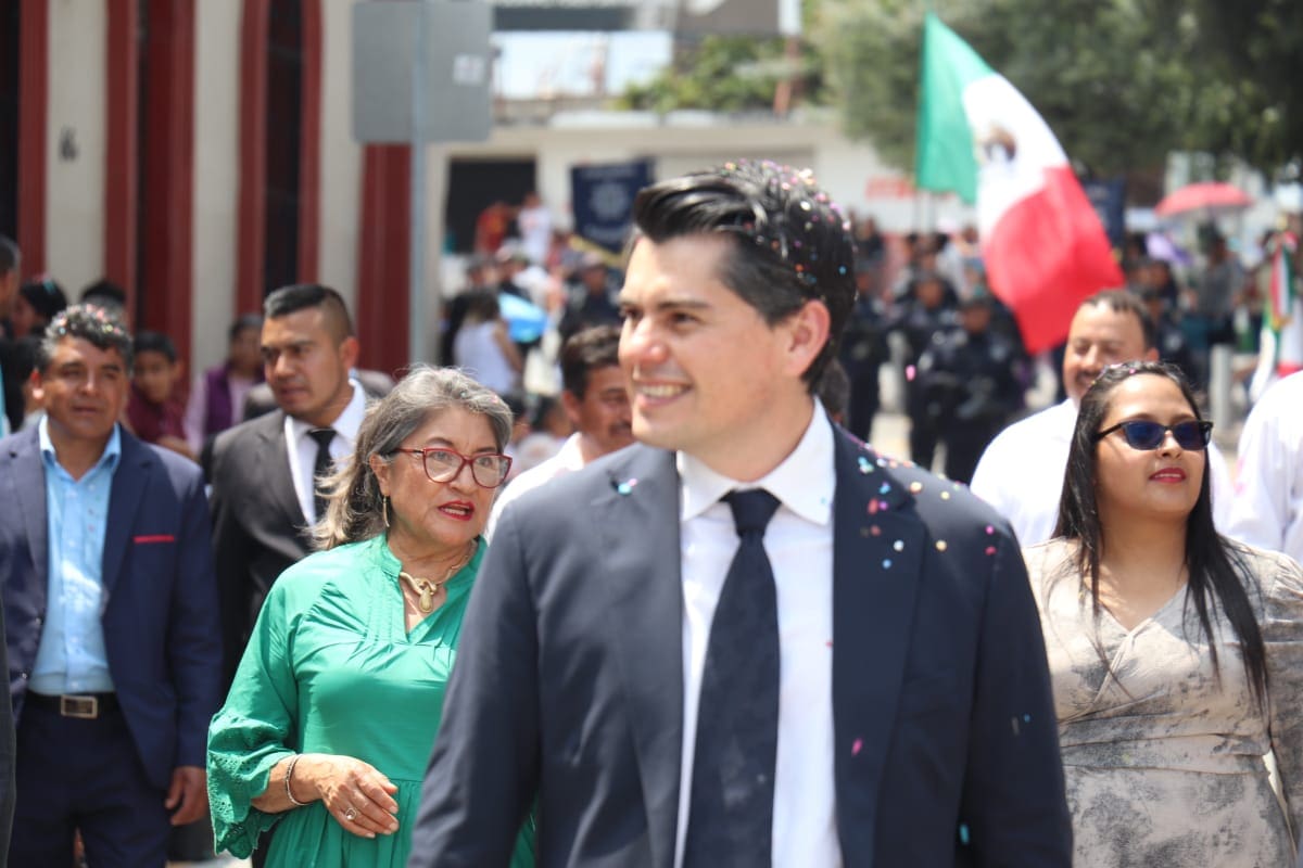 El evento conmemorativo del 213 aniversario de la Independencia de México fue encabezado por el presidente municipal, Toño Ixtláhuac, y la presidenta del DIF, Vanessa Ixtláhuac, quienes partieron del monumento a la Bandera y llegaron al Palacio Municipal.