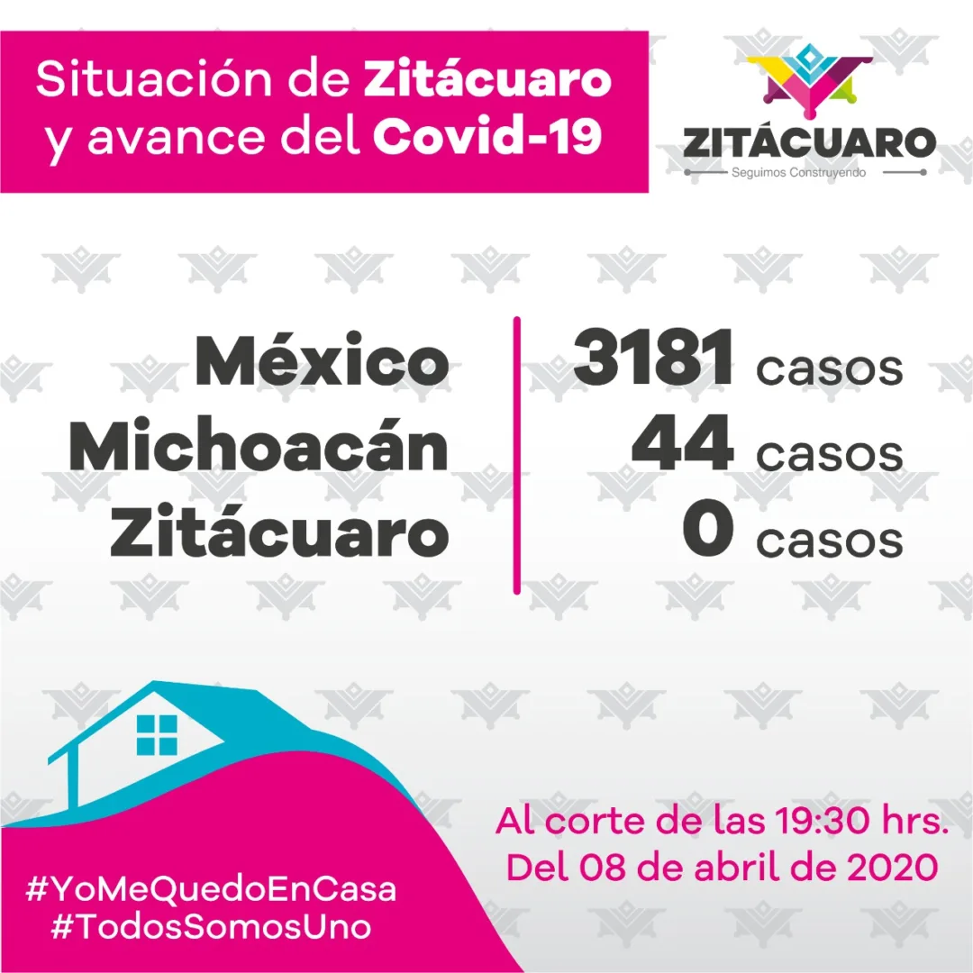 El gobierno municipal de Zitácuaro que encabeza el alcalde Hugo Alberto Hernández Suárez informa que, de acuerdo a la constante información emitida por el Comité Estatal de Seguridad en Salud, al corte de las 19:30 hrs., del 8 de abril de 2020, al momento se registran para COVID-19: