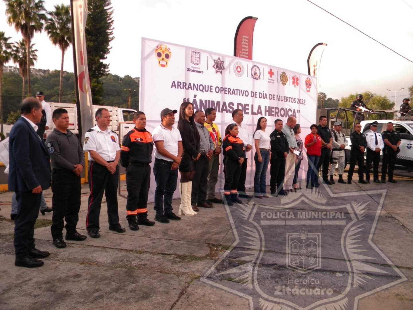 H. Zitácuaro, Mich., a 27 de octubre del 2022.- El Secretario de Seguridad Pública Municipal, en compañía del secretario del ayuntamiento, en representación del presidente municipal Antonio Ixtláhuac, funcionarios municipales y elementos de las diferentes corporaciones del auxilio, dieron arranque al operativo de día de muertos 2022 “Ánimas de la Heroica”, en cual se llevara a cabo del 30 de octubre al 5 de noviembre.