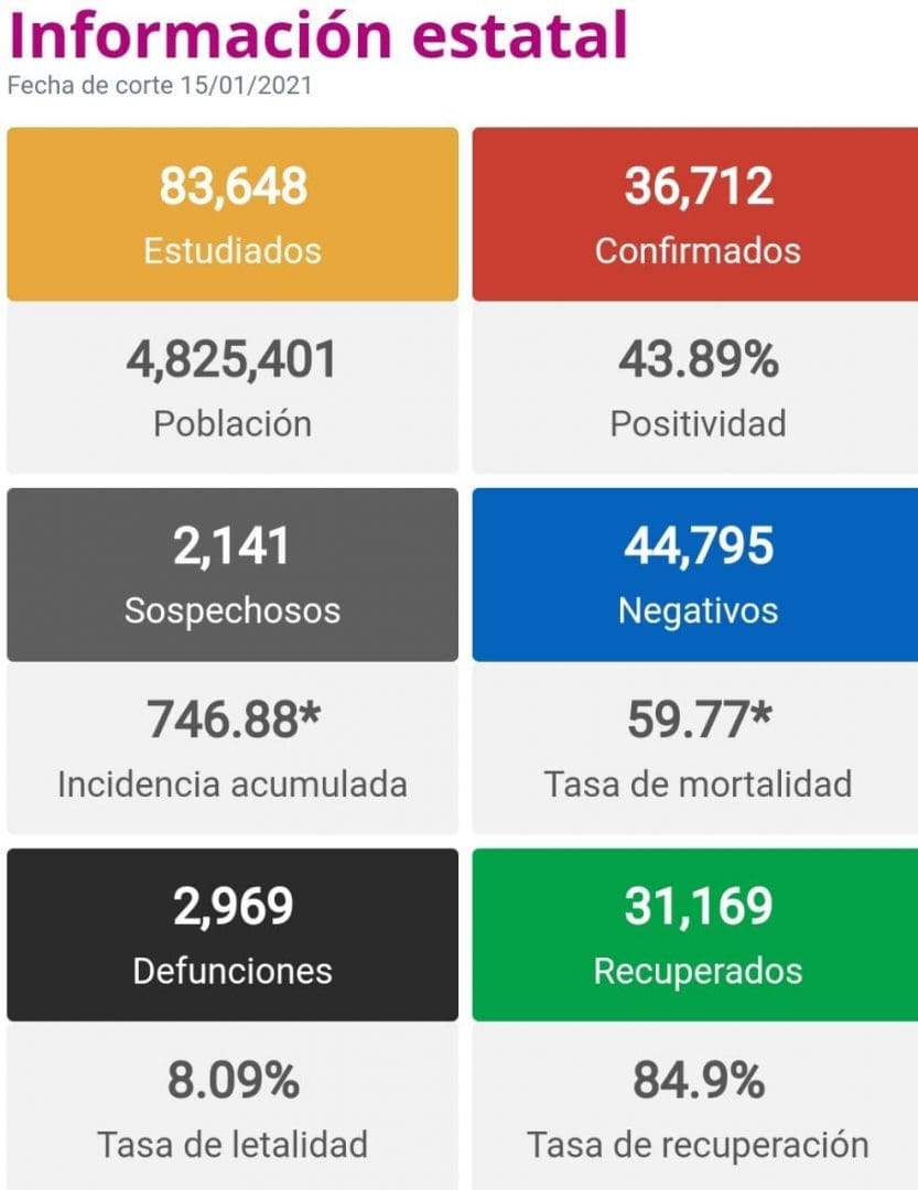 De acuerdo al reporte diario emitido por el Comité Estatal de Seguridad en Salud, mismo que se encuentra disponible en https://michoacancoronavirus.com/nuevaconvivencia/ con corte al 15 de enero de 2021, Zitácuaro se encuentra en bandera amarilla, lo que significa un riesgo alto de contagios.