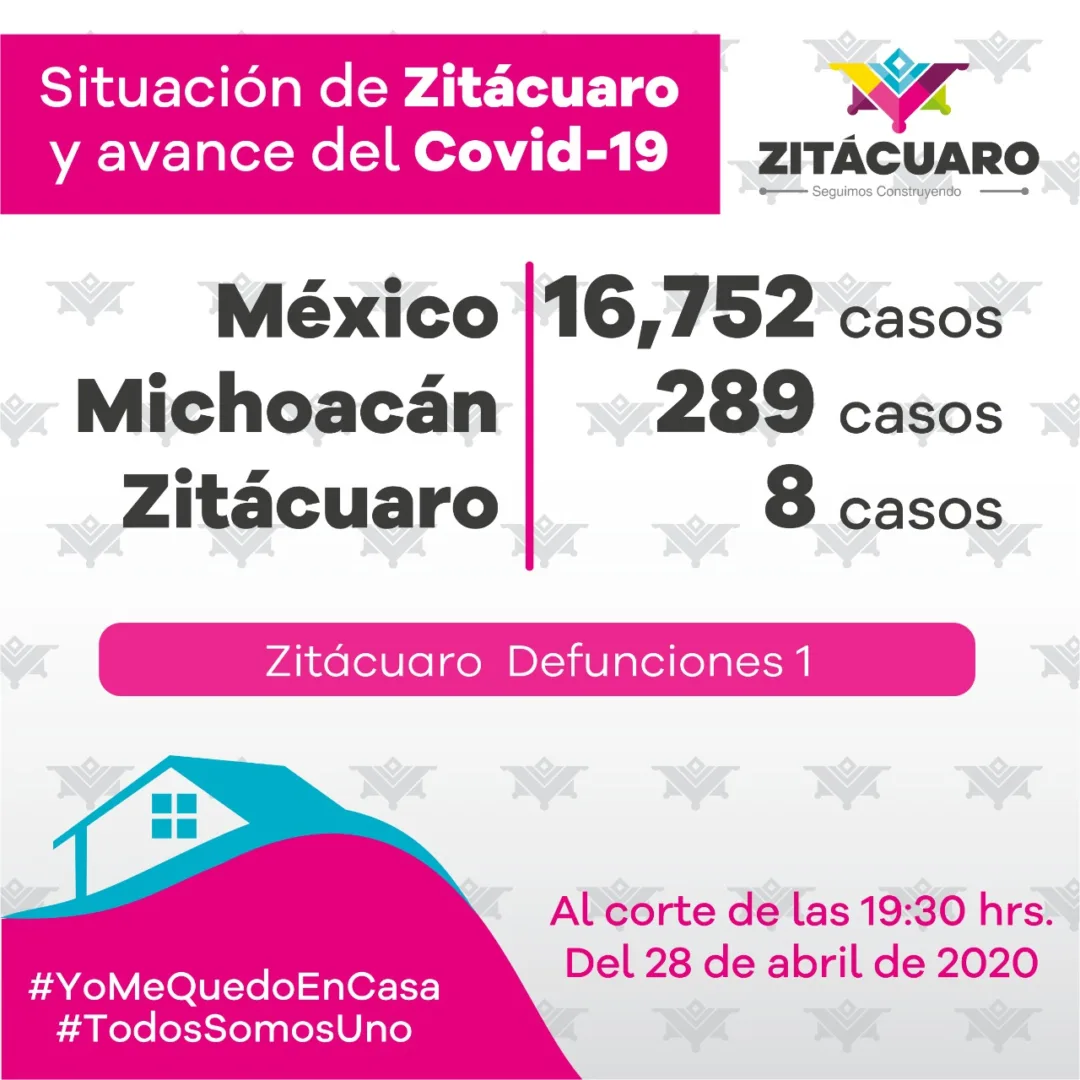 Con corte a las 19:30 horas, de este martes 28 de abril del 2020, el Gobierno municipal de Zitácuaro presidido por el alcalde Hugo Alberto Hernández Suárez, comunica que de acuerdo a la información brindada por el Comité Estatal de Seguridad en Salud, al momento se registran para COVID-19: