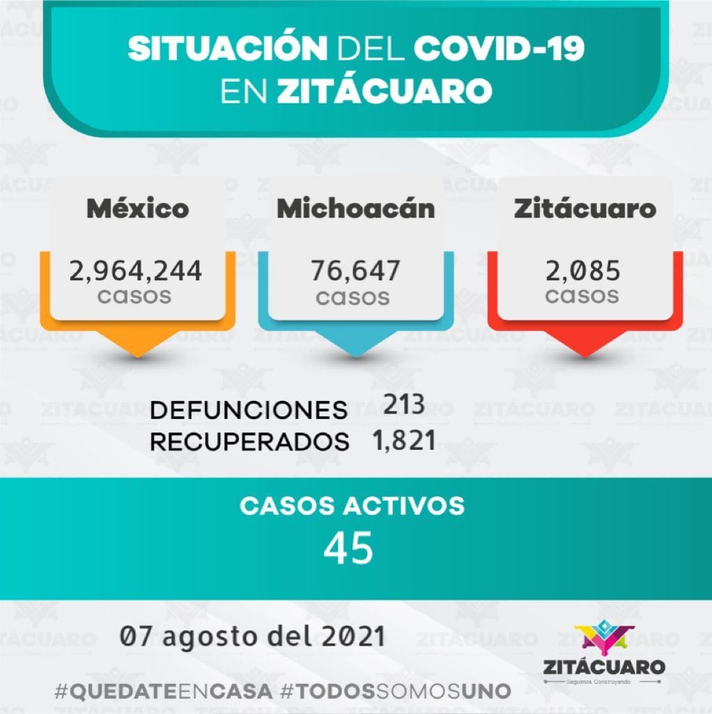 Zitácuaro reporta hoy 10 casos positivos a COVID-19, hay 45 casos activos en el municipio y 17 sospechosos.
