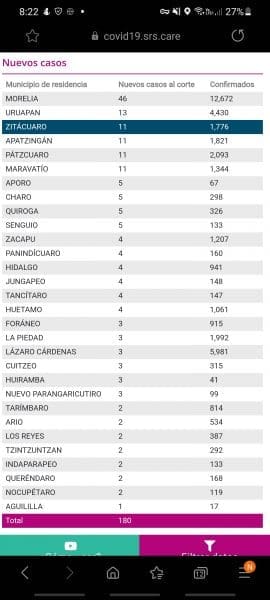 Zitácuaro reporta hoy 11 casos positivos a COVID-19