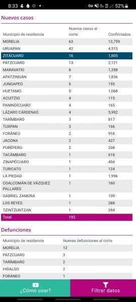 El Comité Estatal de Seguridad en Salud, en https://michoacancoronavirus.com/nuevaconvivencia/ con corte al 18 de marzo de 2021, reporta: