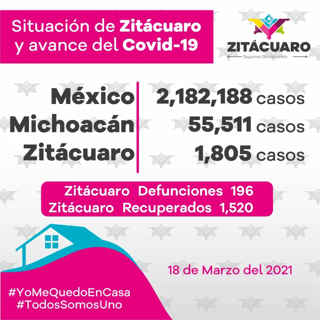 Zitácuaro reporta hoy 16 casos positivos a COVID-19, suman 1805 casos confirmados.