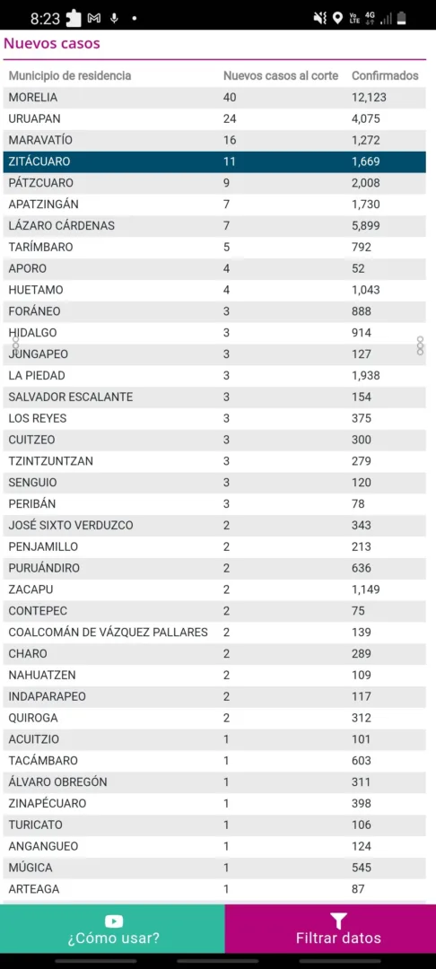 Zitácuaro reportó 11 casos positivos a COVID-19, suman 1669 casos confirmados