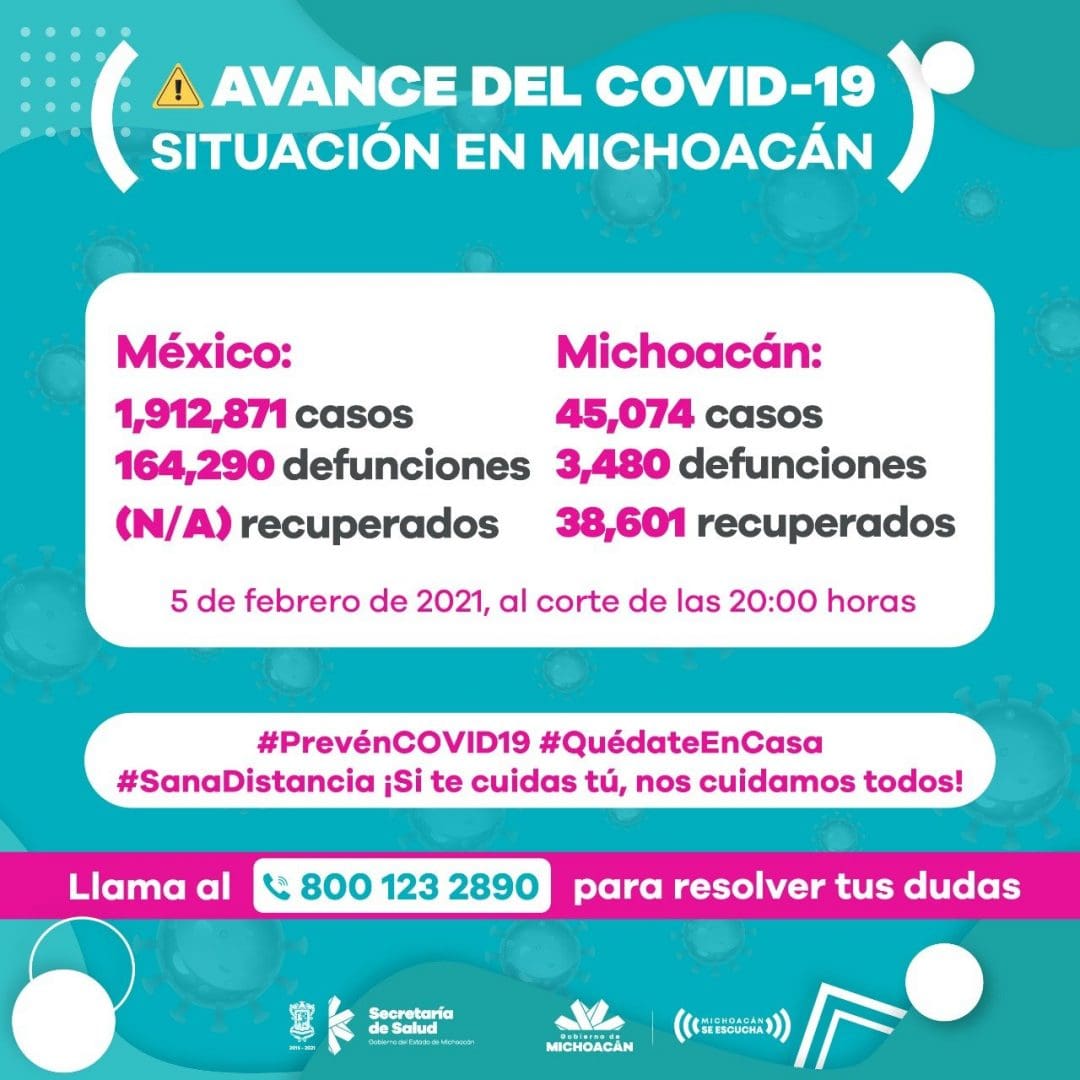 Seguimos en alerta en Zitácuaro. Hoy el Comité Estatal de Seguridad en Salud, en https://michoacancoronavirus.com/nuevaconvivencia/ con corte al 5 de febrero de 2021, reporta: