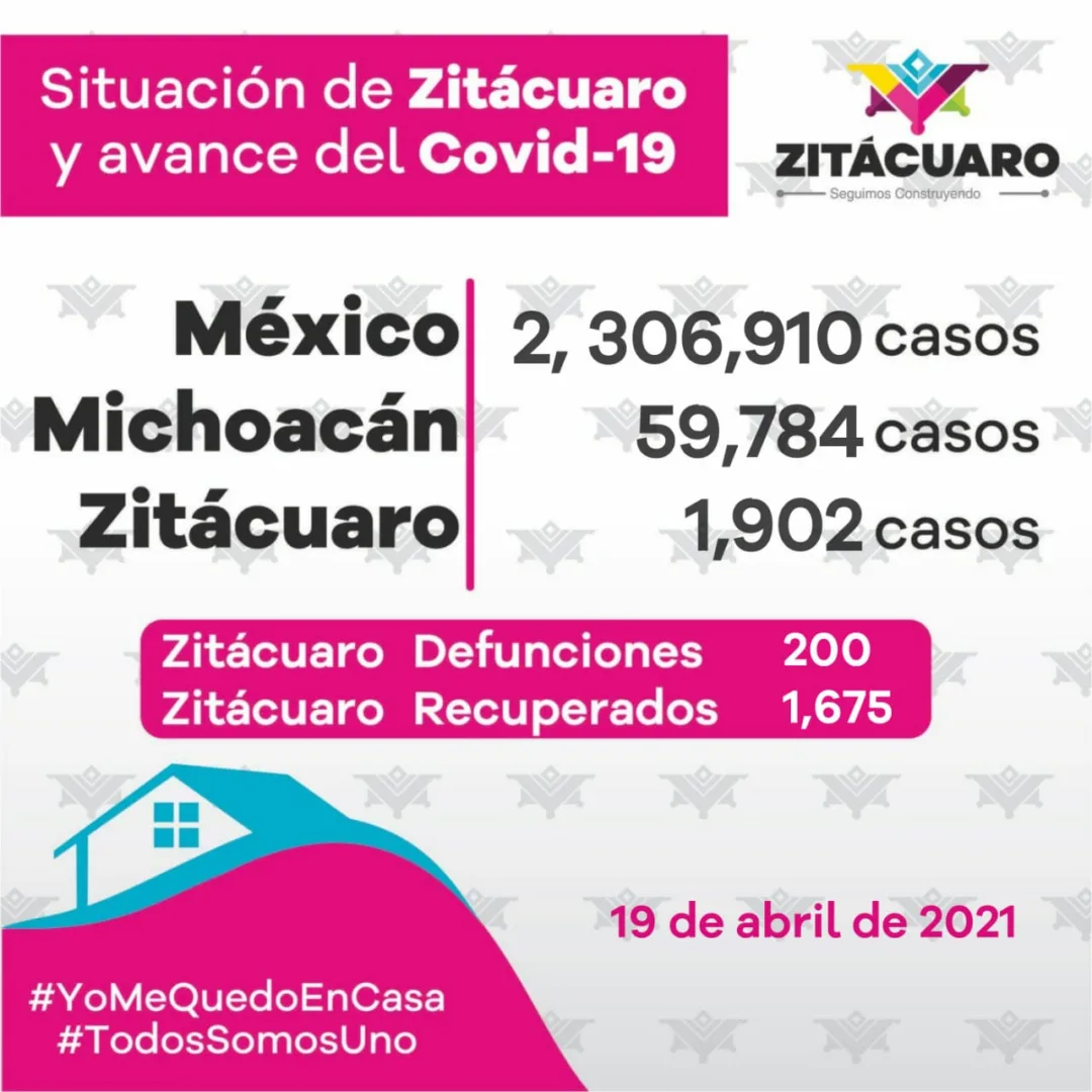 Zitácuaro reportó hoy 4 casos positivos a COVID-19, suman 200 muertos y 1902 casos confirmados.