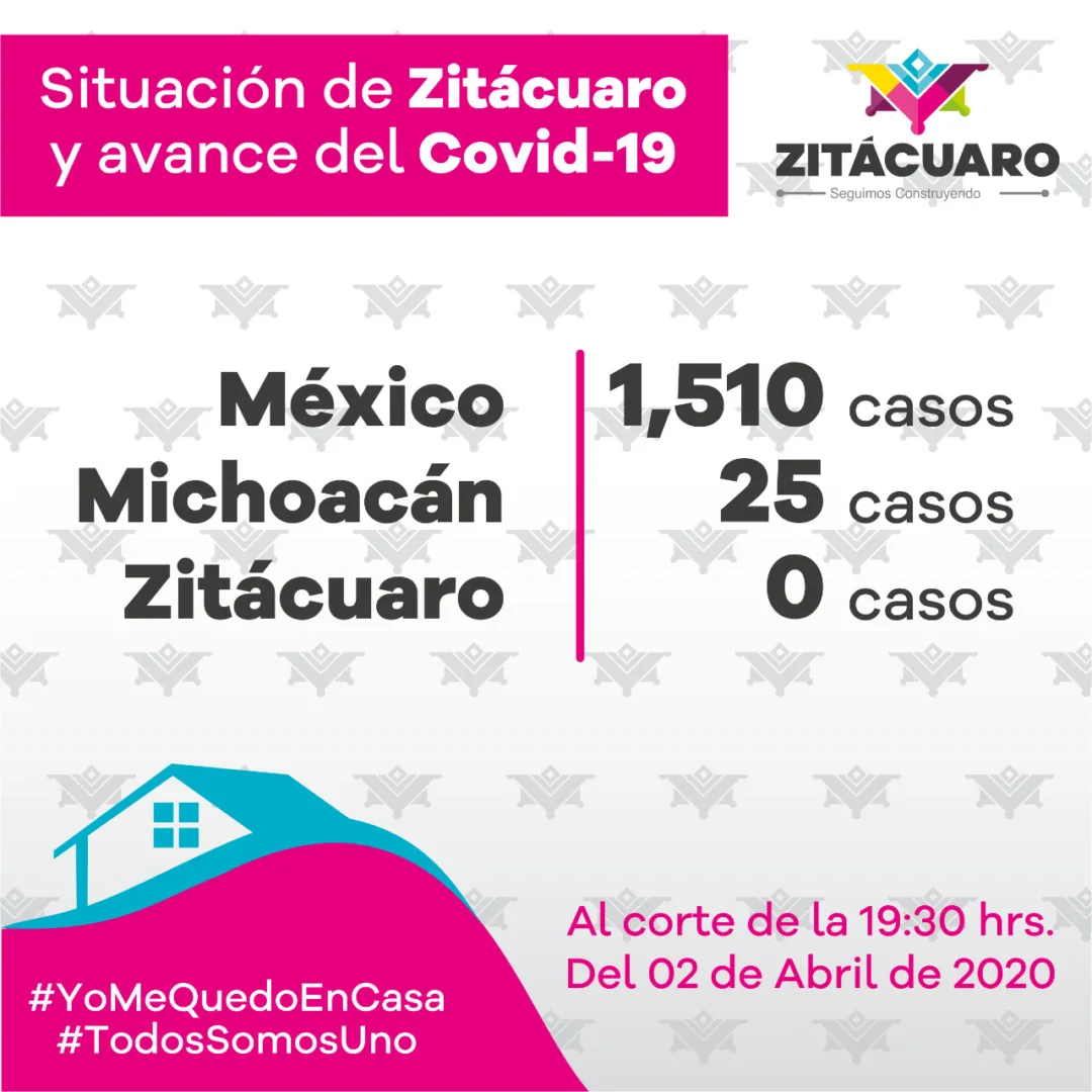 El gobierno municipal de Zitácuaro que encabeza el alcalde Hugo Alberto Hernández Suárez informa que, de acuerdo a la información emitida por el Comité Estatal de Seguridad en Salud, al corte de las 19:30 hrs., del 2 de abril de 2020, al momento se registran para COVID-19:
