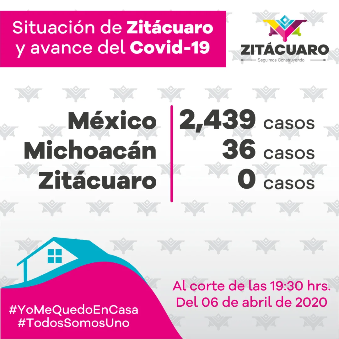 El gobierno municipal de Zitácuaro que encabeza el alcalde Hugo Alberto Hernández Suárez informa que, de acuerdo a la constante información emitida por el Comité Estatal de Seguridad en Salud, al corte de las 19:30 hrs., del 6 de abril de 2020, al momento se registran para COVID-19: