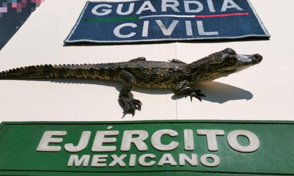 Guardia Civil y Sedena aseguran un cocodrilo, en Uruapan