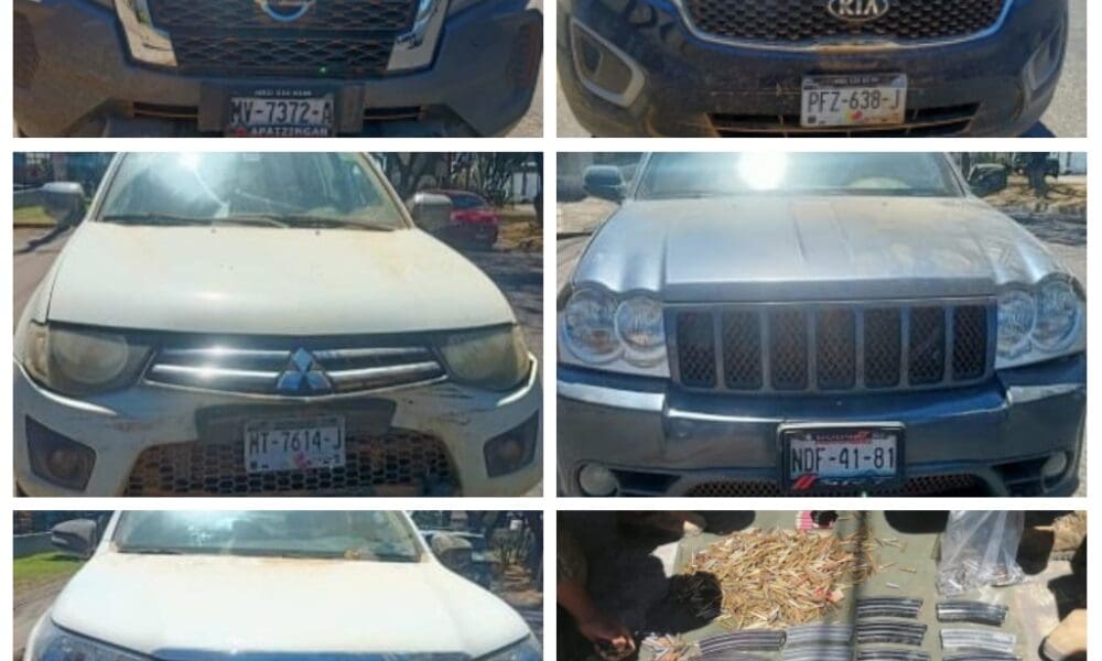 SSP, Sedena y GN aseguran 3 armas largas y 5 vehículos robados, en Uruapan •También fueron asegurados más de mil cartuchos útiles.