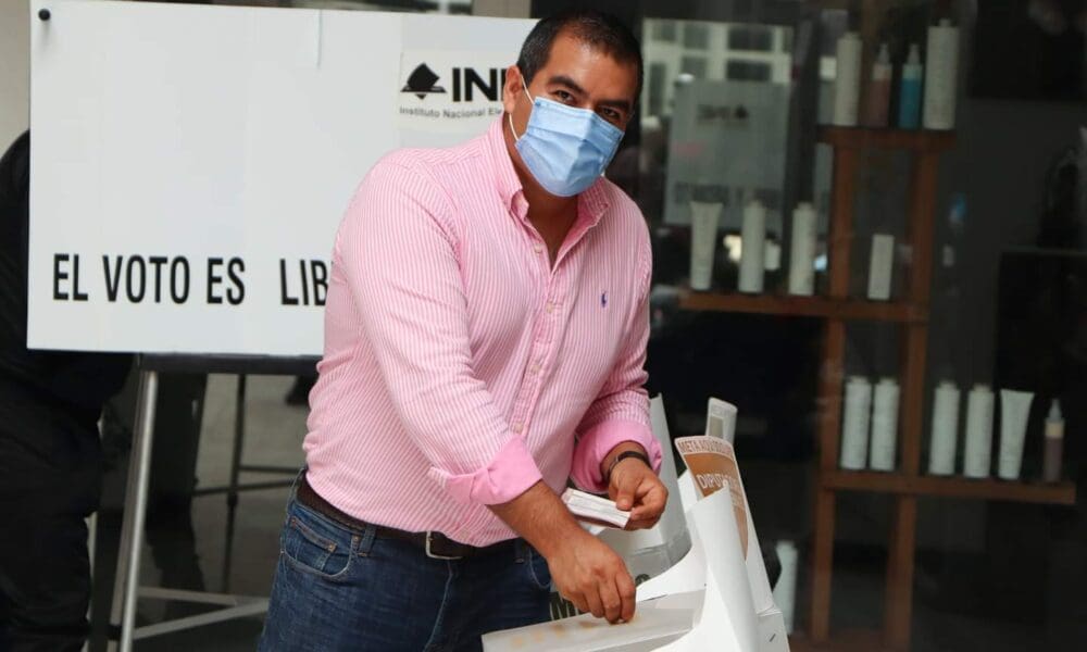 El candidato a la presidencia municipal de Susupuato Esteban Colín Ortiz ejerció su derecho al voto en la cabecera municipal de Susupuato.