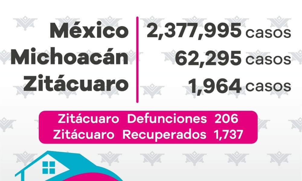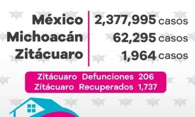 Zitácuaro reporta hoy 3 casos positivos a COVID-19, suman 1,964 casos confirmados desde el inicio de epidemia .