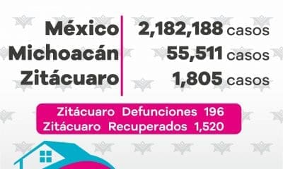 Zitácuaro reporta hoy 16 casos positivos a COVID-19, suman 1805 casos confirmados.