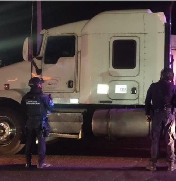 Asegura SSP tractocamión con reporte de robo, en Jacona