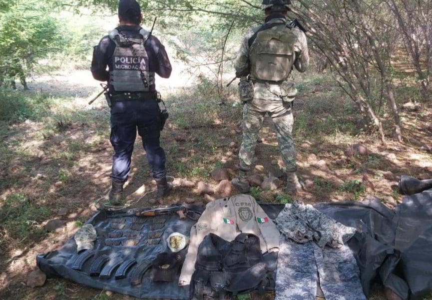 Aseguran SSP y Sedena arma de fuego, cartuchos útiles y droga, en Tiquicheo *Además, se decomisaron 5 cargadores y equipo táctico