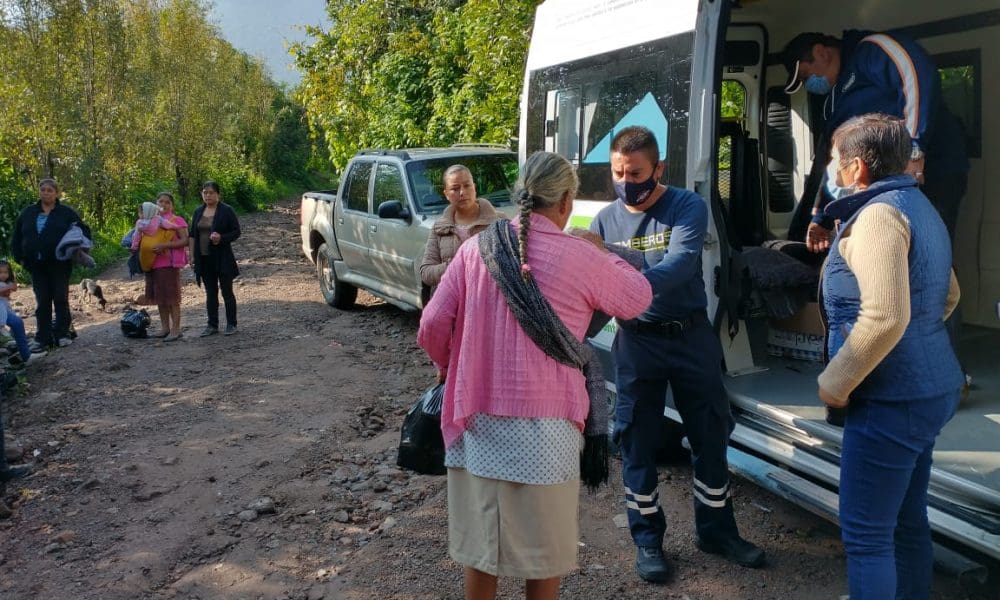 Bomberos de Zitácuaro supervisan zonas de riesgo y entregan apoyos a damnificados por lluvias en Zitácuaro.