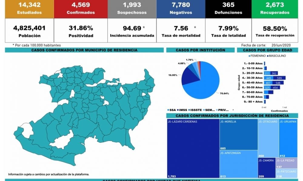 *- Michoacán suma 365 muertos y 4569 casos acumulados por COVID-19. *- Zitácuaro reportó 2 casos nuevos, Huetamo 16, San Lucas 3, Carácuaro 1 y una...