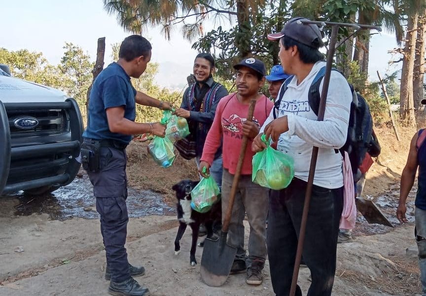 Bomberos acuden a los puestos de víveres para verificar la entrega del apoyo a brigadistas