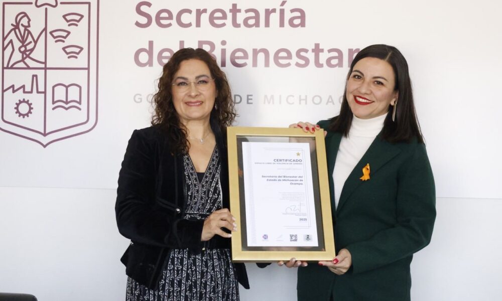 Morelia, Michoacán, 2 de diciembre de 2025. La Secretaría del Bienestar (Sedebi) recibió la certificación de Espacio Libre de Violencia de Género, de acuerdo con lo...