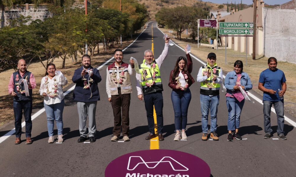 Huandacareo, Michoacán, 2 de diciembre de 2025. El gobernador Alfredo Ramírez Bedolla inauguró la rehabilitación de la carretera San José Cuaro-Tupátaro, según información de la administración...