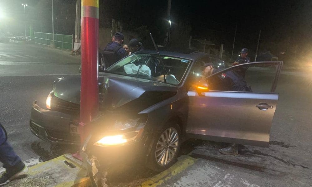 Vehículo se impacta contra poste en la carretera Zitácuaro-Tuzantla