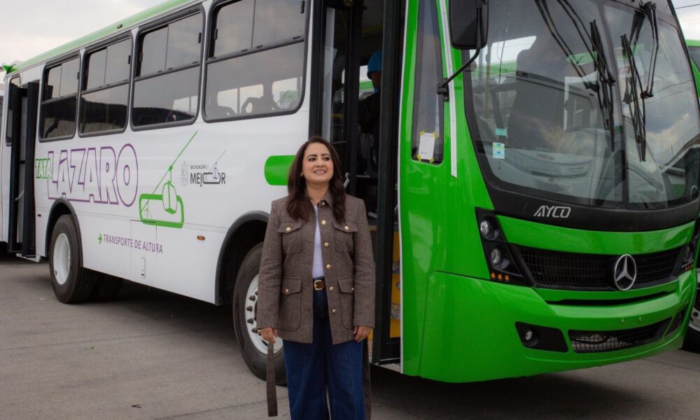 Uruapan, Michoacán, 1 de diciembre de 2025. La secretaria de Desarrollo Urbano y Movilidad (Sedum), Gladyz Butanda Macías, supervisó el equipamiento de los autobuses destinados a...