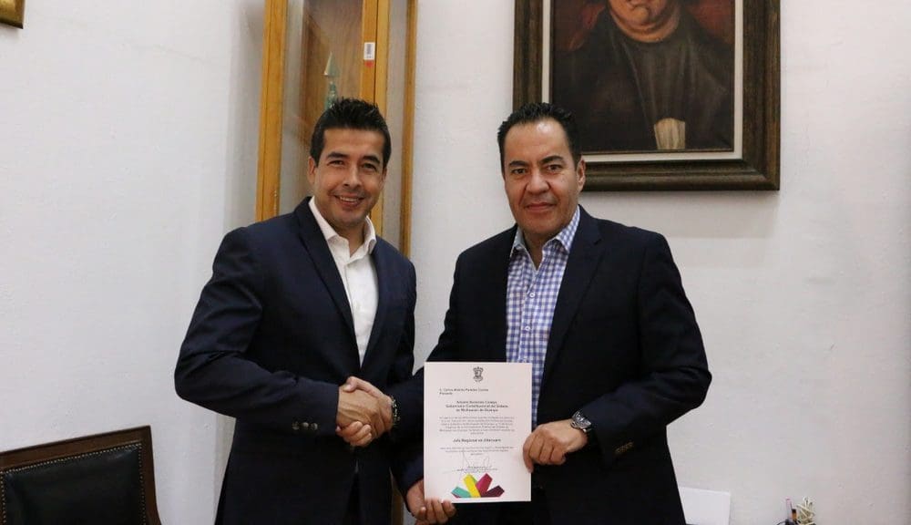 Morelia, Michoacán .- El secretario de Gobierno, Carlos Herrera Tello entregó el nombramiento como jefe Regional del Gobierno del Estado en Zitácuaro a Carlos Paredes Correa.