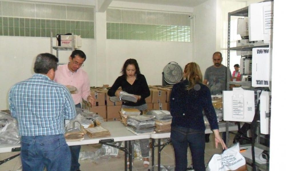 Presencian representantes de partidos y consejeros apertura de bodega para sacar papelera electoral en Zitácuaro.