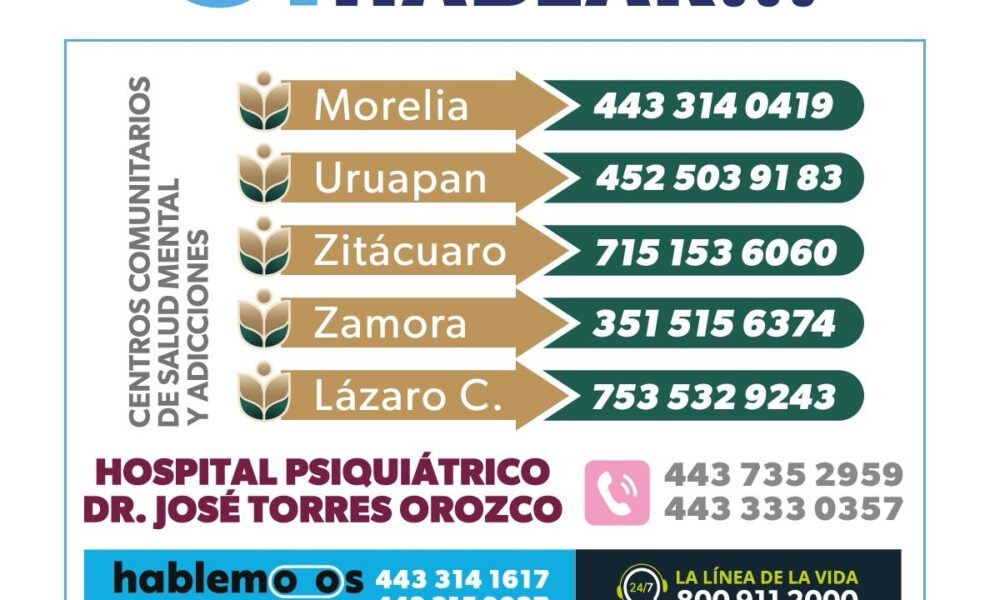 Morelia, Michoacán 28 de noviembre 2025 La Secretaría de Salud de Michoacán (SSM) ha instado a la población a prestar atención a los cambios de ánimo...