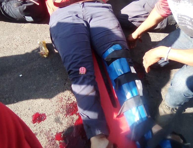 Dos lesionados al impactar su motocicleta contra una grúa en Zitácuaro