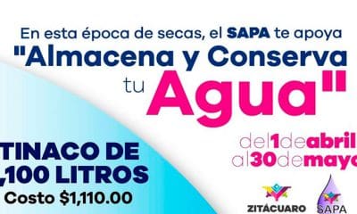 Zitácuaro, Michoacán.- El Sistema de Agua Potable y Alcantarillado (Sapa) de Zitácuaro apoyará a las familias que no tengan en donde almacenar agua, en esta temporada...