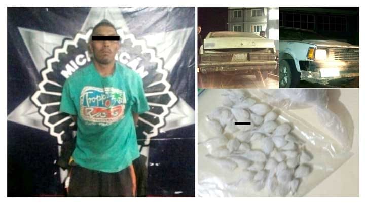 H. Zitácuaro, Michoacán. Elementos de la Policía Michoacán detuvieron a Ivan G. de 27 años de edad, mismo que llevaba entre sus pertenencias 42 envoltorios con...