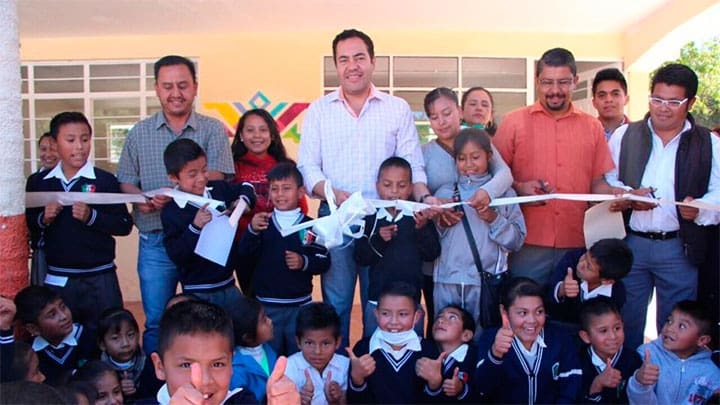 Inaugura alcalde aula escolar en Camembaro y desayunador en la primaria Francisco I. Madero.