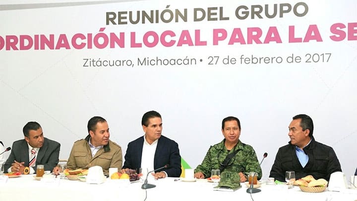 Silvano Aureoles Conejo encabeza en Zitácuaro la reunión del Grupo de Coordinación local, acompañado de los integrantes del Gabinete de Seguridad.