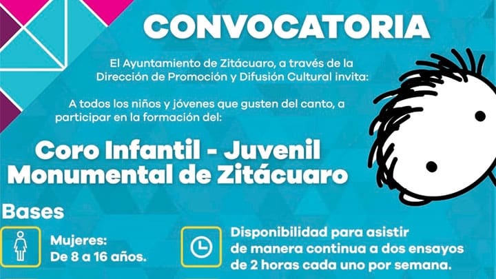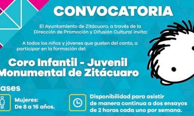 Zitácuaro, Michoacán.- Hasta el próximo 30 de marzo, continuarán abiertas las convocatorias emitidas por el gobierno municipal de Zitácuaro para la conformación del Coro Infantil Juvenil...