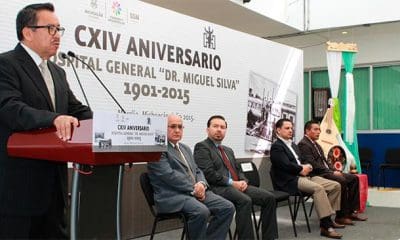Morelia, Michoacán.- Durante el acto del CXIV Aniversario del Hospital General de Morelia “Dr. Miguel Silva”, el secretario de Salud en Michoacán, Carlos Aranza Doniz, manifestó...