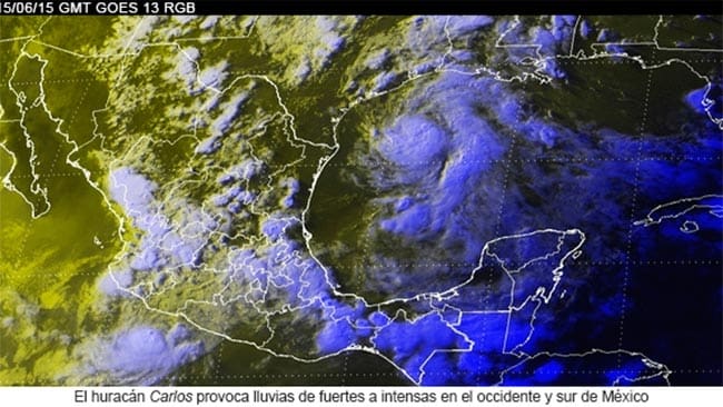 A las 19:00 horas, tiempo del centro de México, el huracán Carlos, categoría 1 en la escala Saffir-Simpson, se ubicó sobre el mar, aproximadamente a 145...