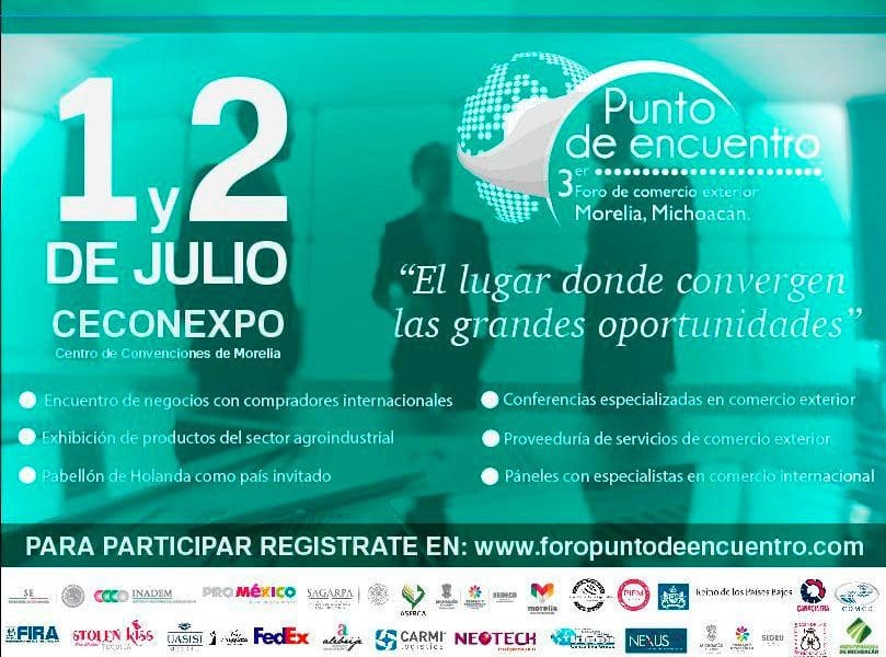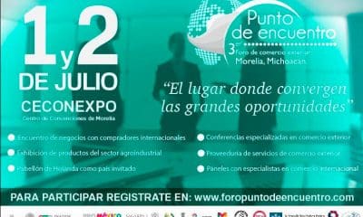Morelia, Michoacán.- Los días 1 y 2 de julio, se llevará a cabo el 3er. Punto de Encuentro Foro de Comercio Exterior, Michoacán 2015, que promueve...