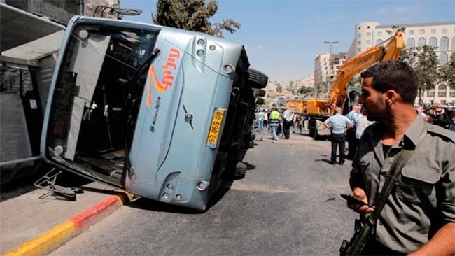 Dos personas ha muerto y seis han resultado heridas al volcar un autobús israelí que fue embestido por un tractor conducido por un joven palestino en...
