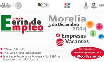 Morelia, Michoacán.- El Servicio Nacional de Empleo en Michoacán, llevará a cabo la última Feria de Empleo del 2014 este viernes 5 de diciembre en las...