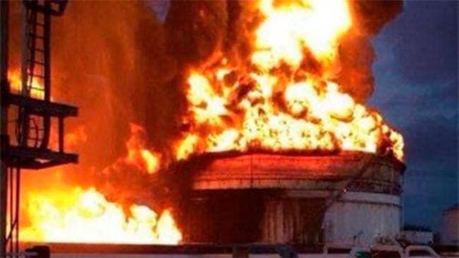 Ciudad Victoria, Tamps.- Un incendio en un tanque de almacenamiento de Pemex se registra desde la madrugada de este miércoles, en las instalaciones de la refinería Francisco I. Madero,...