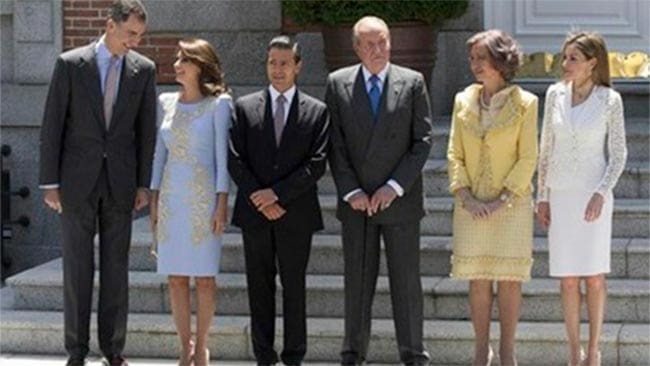 El rey Juan Carlos de España impuso este lunes al presidente de México, Enrique Peña Nieto, el Collar de la Orden de Isabel la Católica, la...