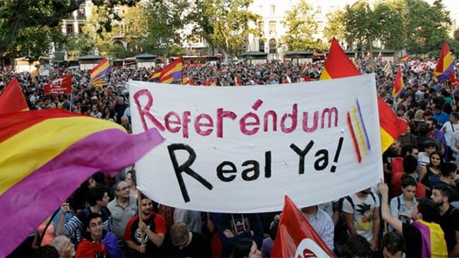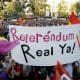 Miles de personas se concentraron en el centro de Madrid este sábado en una manifestación que exigió la celebración de un referéndum para elegir el modelo...