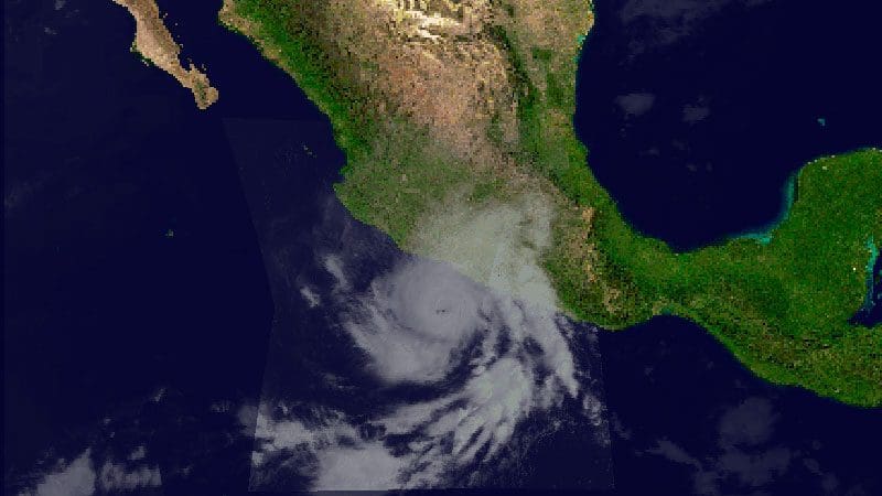 Raymond, Huracán Categoría 3, se ubica a las 7:00 horas de hoy a 185 kilómetros al sur-suroeste de Zihuatanejo, Guerrero, y a 265 kilómetros al oeste-suroeste...