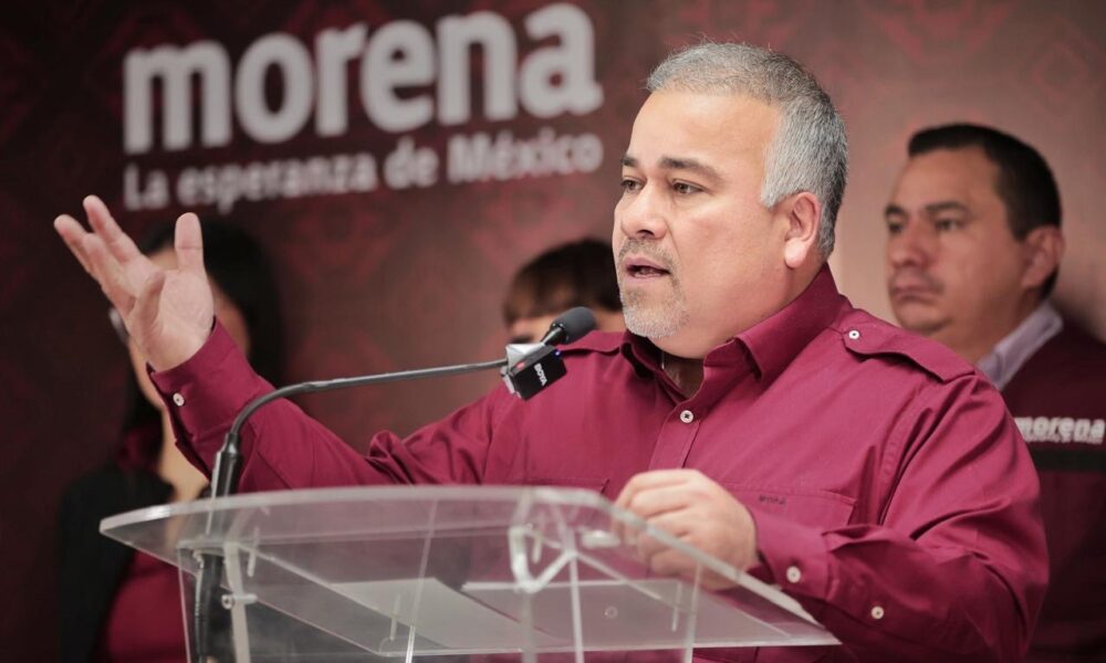 Morelia, Michoacán a 15 de diciembre de 2025. El dirigente estatal de Morena en Michoacán, Jesús Mora González, anunció el inicio del registro para el programa...
