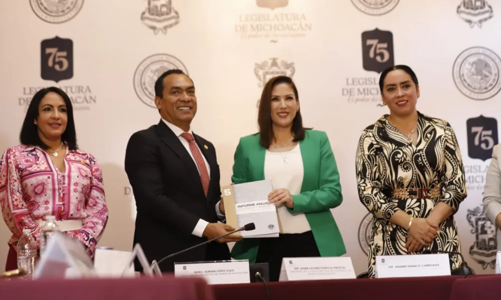 Morelia, Michoacán, a 28 de febrero del 2024.- La presidenta de la Mesa Directiva del Congreso del Estado, Ivonne Pantoja Abascal, recibió el Quinto Informe Anual...