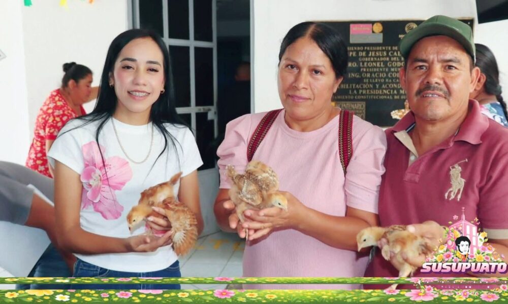 Susupuato, Michoacán – La presidenta municipal de Susupuato, Diana Laura Mondragón Benites, entregó paquetes de pollitos de doble propósito a familias del municipio.